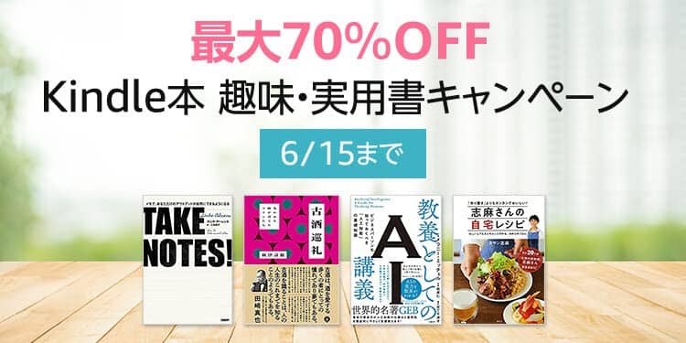 Kindleストアで最大70%OFF Kindle本趣味・実用書キャンペーンがスタートしています。セール期間は6月15日まで。