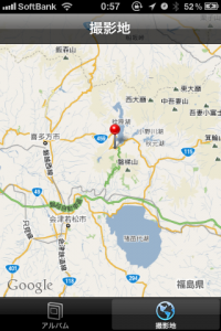 先日、スキー旅行で裏磐梯(福島県)へ行ったのですが、地図を拡大していくと1はスキー場で取った写真で、2はホテルで取った写真ということがわかります。結構正確な位置情報ですね。