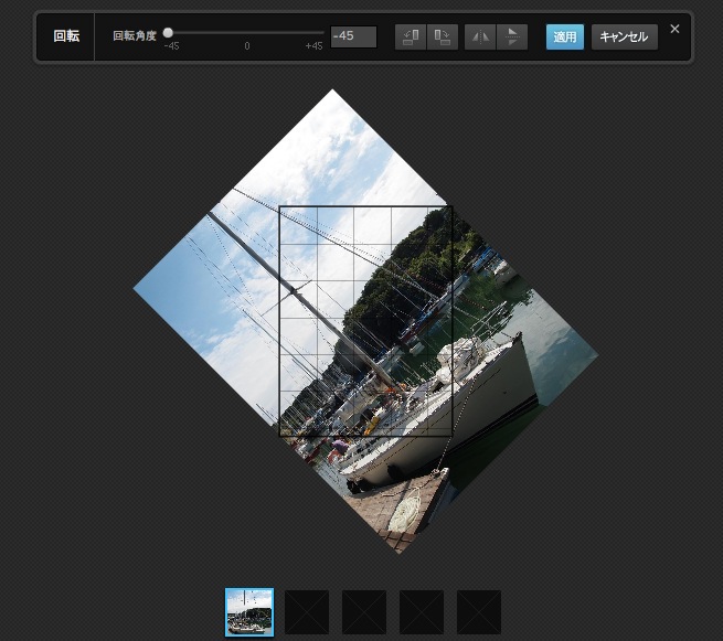 写真をアップロードするとこんな画面。ちなみに写真は作年の夏に乗りに行ったヨット「SHIOKAZE」。
