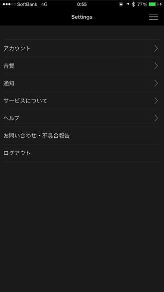 アプリ内から「Setting > 音質」と進み、設定を「Low」に変更すればデータ通信量はさらに抑えることができます。