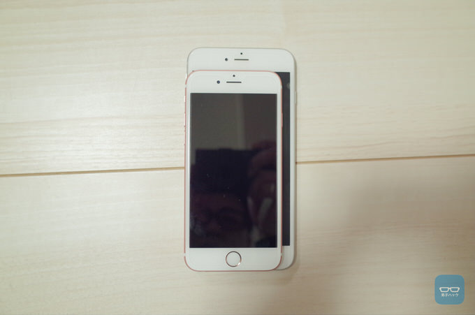 どうしても避けられない「大きさ」ですが、iPhone 6 Plusと比較すると、かなり大きくなっていることを実感できます。以下の写真がケースを装着していない状態でiPhoneを重ねたものです。