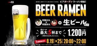 ラーメンチェーン店「一風堂」は8月19日、国内の一部店舗でラーメン「特製白丸」「特製赤丸」を注文した人を対象に、生ビールを最大5杯までサービスするキャンペーンを開始。想定以上の反響で、内容を一部変更し、無料ではなくセット価格としてラーメンに140円(もしくは210円)を追加するセット価格で提供するとしています。