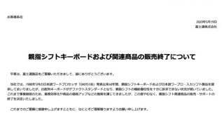 富士通が、親指シフトキーボードおよび親指シフト関連商品の販売・サポートを終了すると発表しました。
